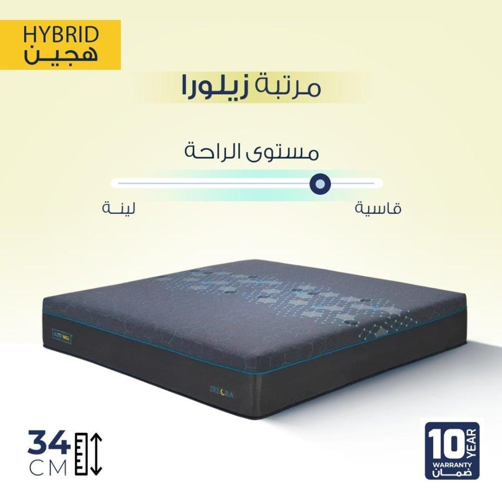 ارتقِ بتجربة نومك مع مرتبة زيلورا الفاخرة هايبرد بارتفاع 34 سم، المصممة لتجمع بين الراحة الفائقة والدعم الطبي والتهوية الصحية.